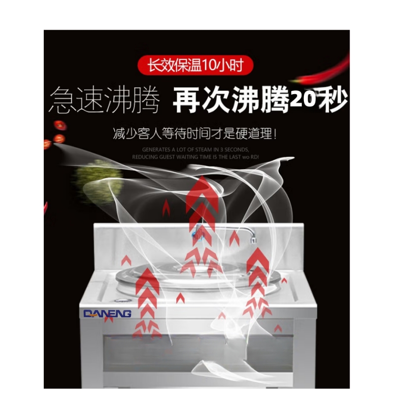 產(chǎn)品由高效能燃燒器、高效能換熱容器、保溫層、湯渣籃及先進(jìn)的微電腦控制系統(tǒng)等部件組成,質(zhì)量優(yōu)良,性能穩(wěn)定,節(jié)能環(huán)保。產(chǎn)品經(jīng)過用戶實(shí)驗(yàn)證明,同傳統(tǒng)明火湯爐或矮仔爐在同等條件下對比燃?xì)夤?jié)能率可高達(dá)65%,節(jié)省時(shí)間45%以上。